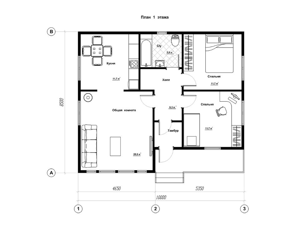 Общая S - 85кв.м